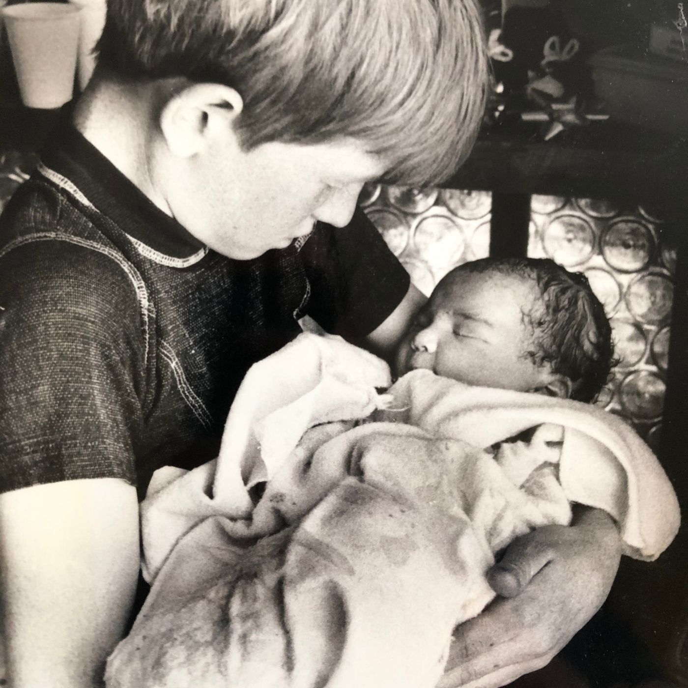 The featured photo on this episode is of my brother Danny, holding me when I’m about 20 minutes old. (Credit goes to my mom’s photographer friend, who I think is named Vinny White?)